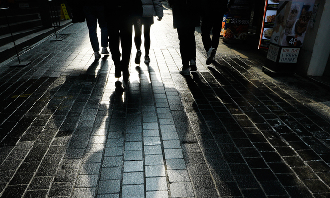 '5인 이상 모임 제한' 첫날인 23일 서울 중구 명동거리에서 직장인들이 식사를 위해 이동하고 있다. 뉴스1
