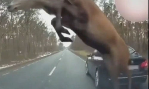 하지만 가장 뒤에서 달려오던 사슴은 차량을 피하지 못하고 트렁크에 부딪혔다.