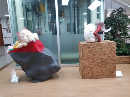 이 가운데 18점은 지난해 1월 충북대 조형예술학과 학생들과 교수가 기증한 작품이고, 나머지는 학교가 구입하거나 학부모들이 기증한 것이다.