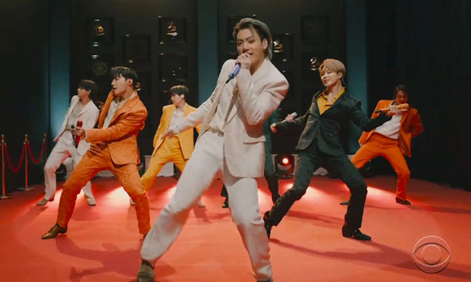 방탄소년단(BTS)이 지난 15일 미국 로스앤젤레스 컨벤션센터에서 열린 제63회 그래미 어워드(GRAMMY AWARDS)에서 한국 가수 최초로 단독 공연을 펼쳤다. AP·연합뉴스