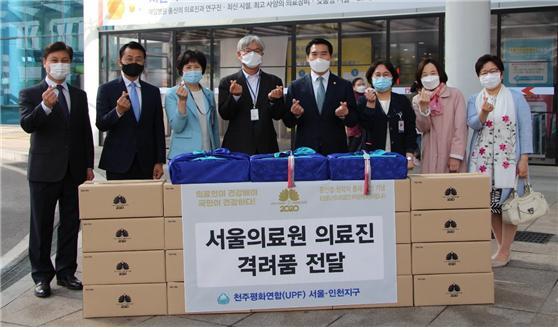 UPF 서울·인천지구는 서울의료원 의료진에 감사장과 함께 ‘천수삼 농축차’(홍삼액기스) 120박스를 전달했다.