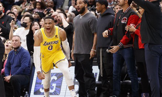 미국프로농구(NBA) 로스앤젤레스(LA) 레이커스가 러셀 웨스트브룩의 극적인 동점 3점포로 끌고 간 연장전에서 토론토 랩터스를 따돌리고 3연패를 끊어냈다.