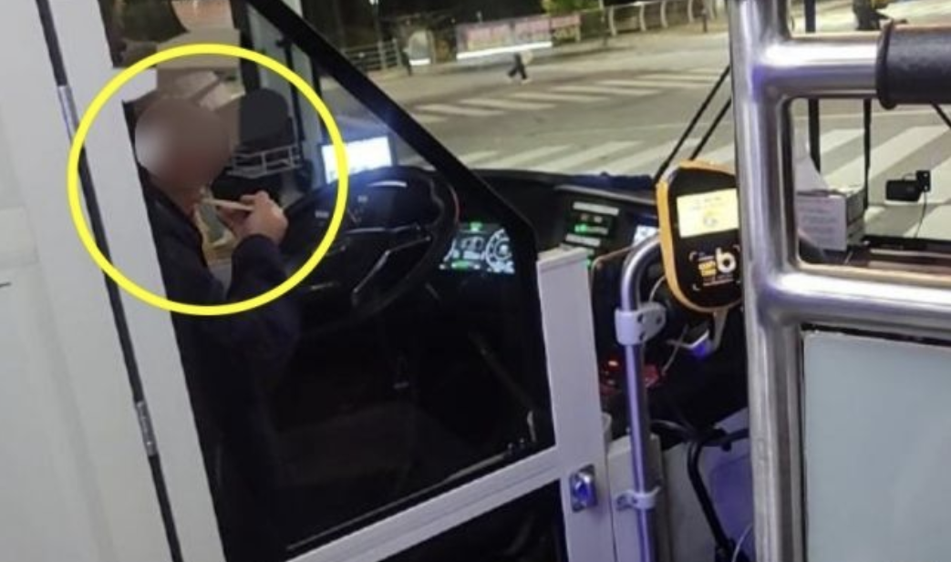 한 마을버스 기사가 운전석에서 신호 대기 중 급하게 컵라면 먹는 모습이 포착됐다.
