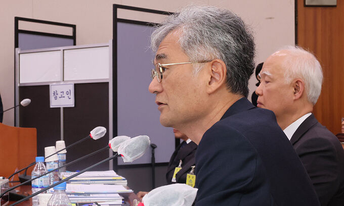 김흥준 부산고등법원장이 20일 국회 법제사법위원회에서 열린 부산지법 등에 대한 국정감사에서 참고인으로 출석한 '부산 돌려차기' 사건 피해자 관련 질의에 답변하고 있다. 연합뉴스