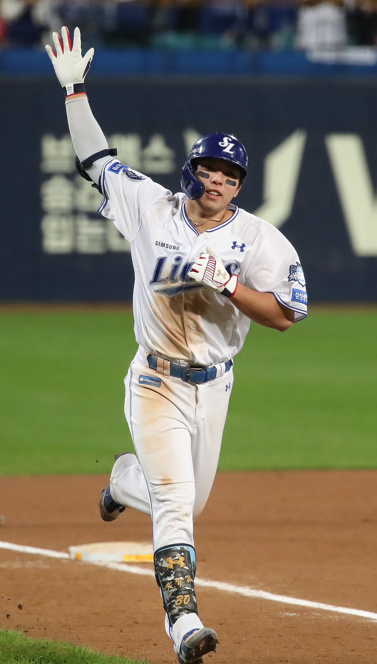 삼성 김영웅이 홈런을 터뜨린 뒤 기뻐하고 있다. 뉴스1