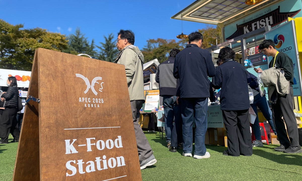 31일 경북 경주 아시아태평양경제협력체(APEC·에이펙) 미디어센터 주변에 있는 ‘K-푸드 스테이션’에는 음식을 받으러 온 줄이 길었다. K-푸드 스테이션은 떡볶이, 한과, 라면, 떡 등 유명한 한국 음식을 먹을 수 있는 공간이다. 에이펙 정상회의에 참가하는 각국 대표단과 미디어 관계자들이 이용할 수 있도록 만들었다.