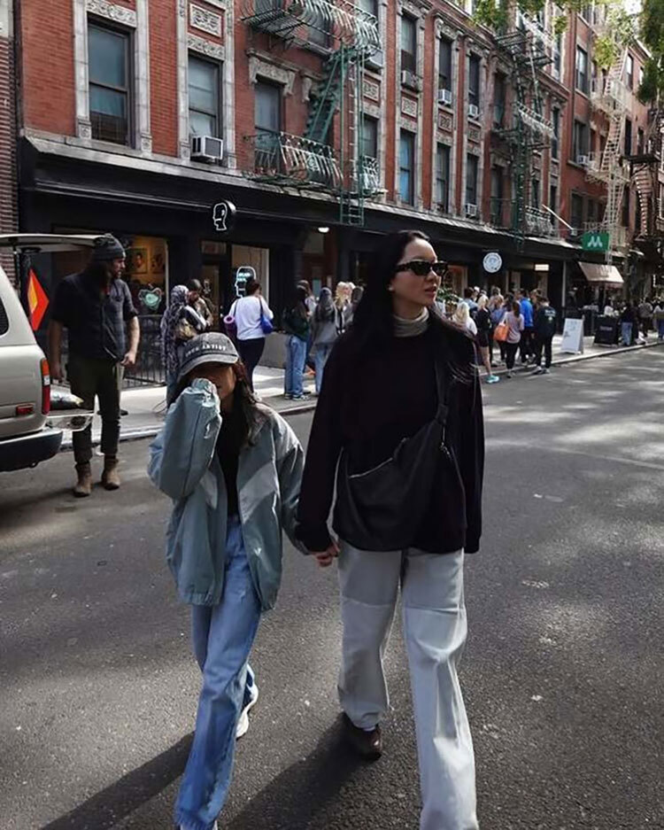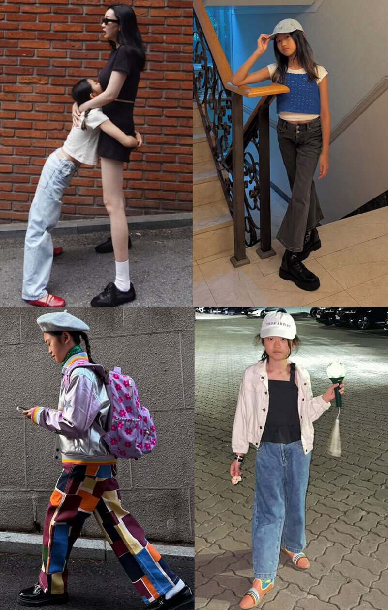 가장 눈길을 끈 건 장윤주와 손을 잡고 거리를 걷는 8세 딸의 모습이었다. 딸은 루즈한 데님과 오버핏 재킷을 매치한 편안한 차림에도 또래보다 긴 다리와 쭉 뻗은 실루엣이 돋보였다. 모자를 눌러쓴 채 자연스럽게 걷는 모습만으로도 존재감이 살아났고, 엄마와 나란히 선 장면은 ‘모녀 화보’ 같은 분위기가 연출됐다.