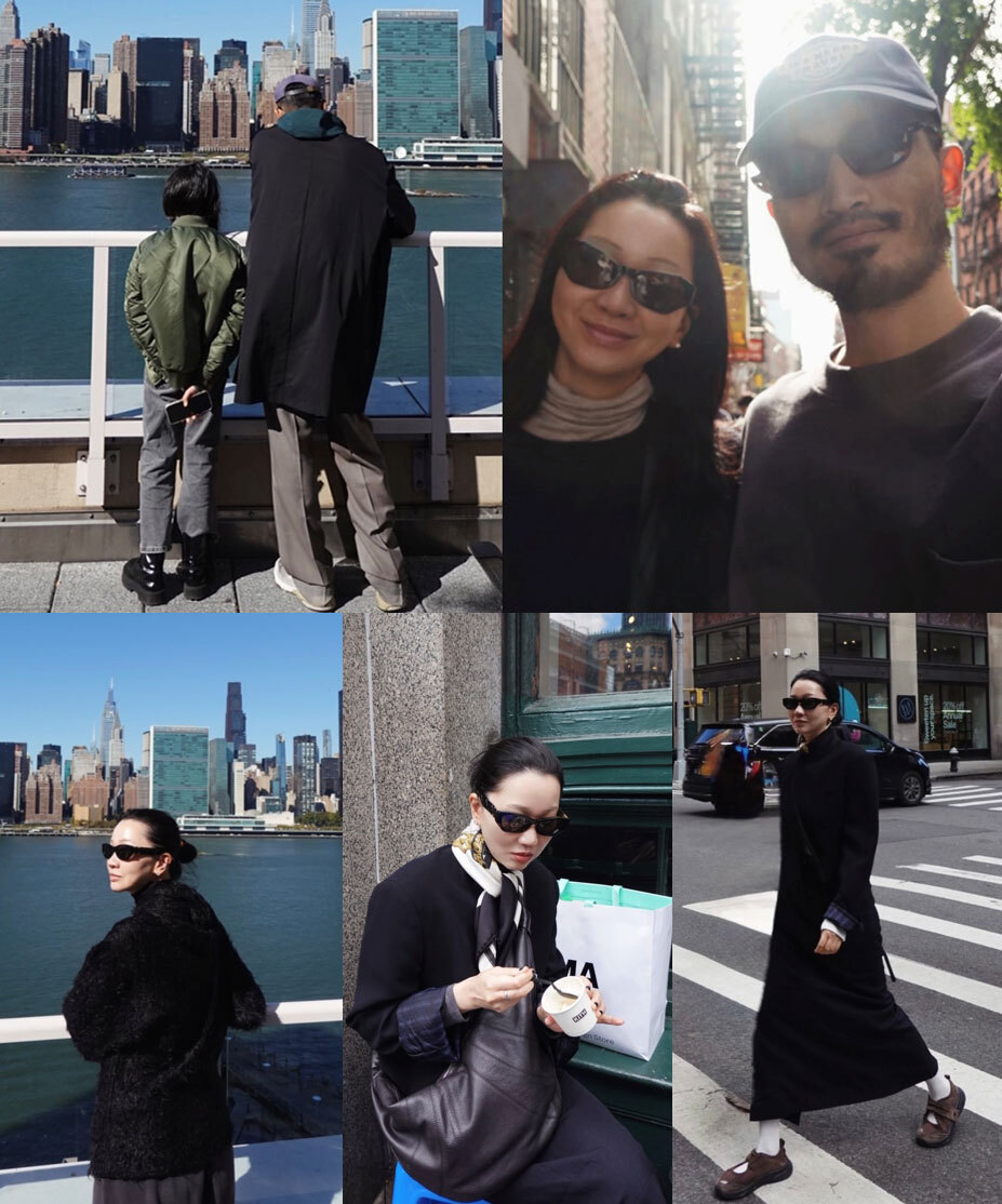 장윤주는 특유의 시크한 분위기를 자랑했다. 뉴욕 스카이라인을 배경으로 선글라스를 쓴 채 서 있는 모습은 도시의 고급스러운 감성을 담아냈고, 카페 앞에서 작은 컵 디저트를 즐기는 사진에서는 패턴 스카프와 블랙 톤의 스타일링이 어우러져 세련된 여행룩을 완성했다. 횡단보도를 건너는 장면에서는 긴 기장의 블랙 룩과 안정적인 보폭이 어우러져 본업의 아우라를 다시 한번 증명했다.