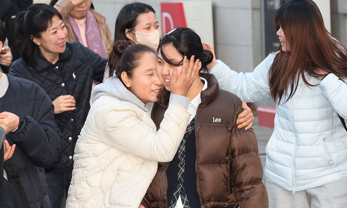 “수고했어” 2026학년도 대학수학능력시험일인 13일 서울 중구 이화여자외국어고등학교에서 시험을 마치고 나온 수험생과 가족들이 환한 표정으로 인사를 나누고 있다. 이제원 선임기자