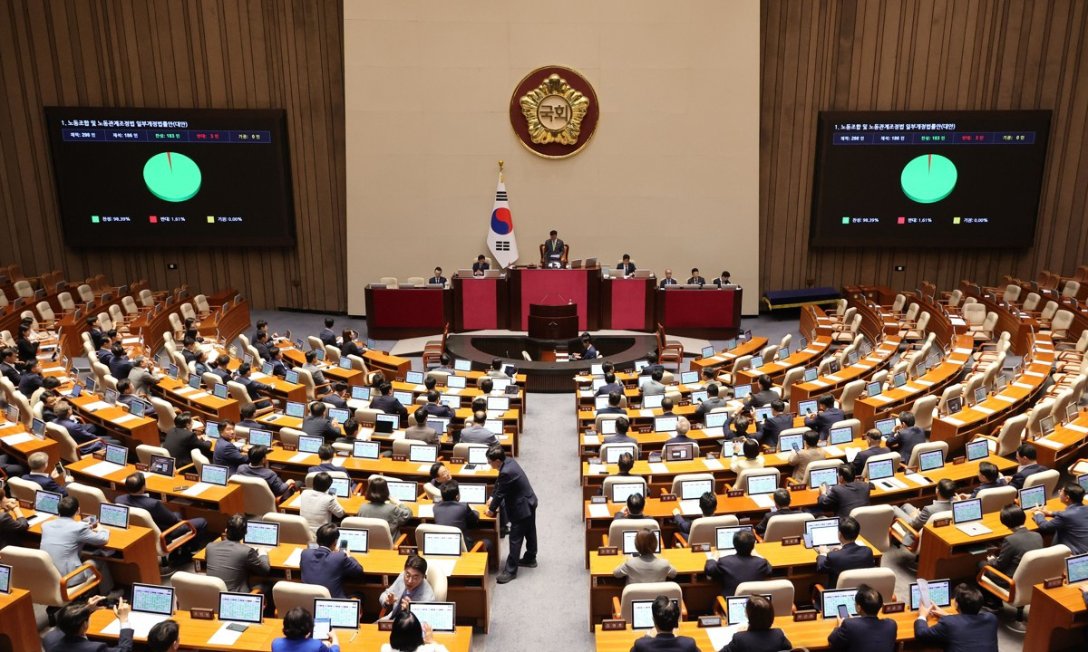 지난 8월 24일 국회 본회의에서 '노동조합 및 노동관계조정법 일부개정법률안(노란봉투법)'이 통과되고 있다. 연합뉴스