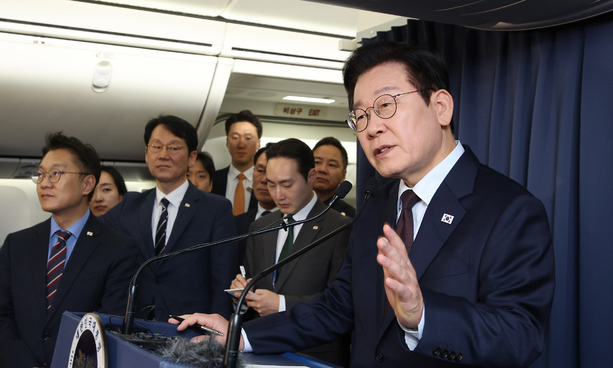 이재명 대통령이 그제 남아프리카공화국에서 열린 주요 20개국(G20) 정상회의 참석을 마치고 튀르키예 국빈 방문을 위해 이동하는 전용기 기내에서 기자간담회를 열었다. 이 대통령은 남북 관계 개선에 대한 소신을 밝히며 “한·미 연합훈련은 북한이 가장 예민해하는 부분”이라고 지적했다. 이어 “남북 간 평화체제가 확고하게 구축되면 훈련을 안 하는 것이 바람직하다”고 말했다. 앞으로 남북 및 북·미 관계 개선을 위해 한·미 연합훈련 중단을 협상 카드로 쓸 수 있음을 내비친 것인데, 북한의 긍정적 검토와 전향적 태도를 적극 촉구한다.