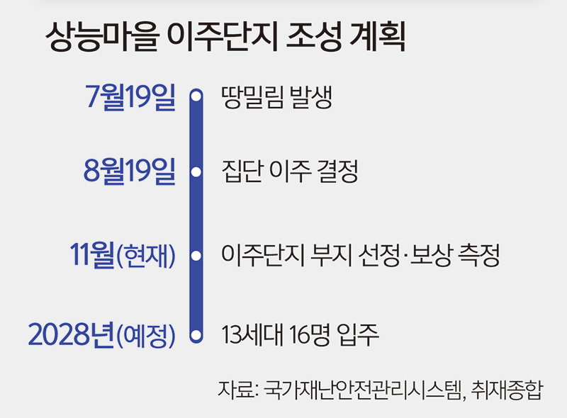 김숙희씨는 “평생 농사를 짓고 일궈온 땅을 잃었는데, 돈으로 보상한다고 한들 어떻게 보상이 되겠나”라며 “할 수 있는 것이 없으니 이주를 기다릴 뿐”이라고 말했다. 김광연 상능마을 이장은 “우리나라 연평균 강수량이 1300㎜라는데, 그 절반인 670㎜가 3일 만에 쏟아졌다”며 “몇 백년 동안 없었던 일이 생겼으니 하늘을 원망할 뿐”이라며 말을 아꼈다.