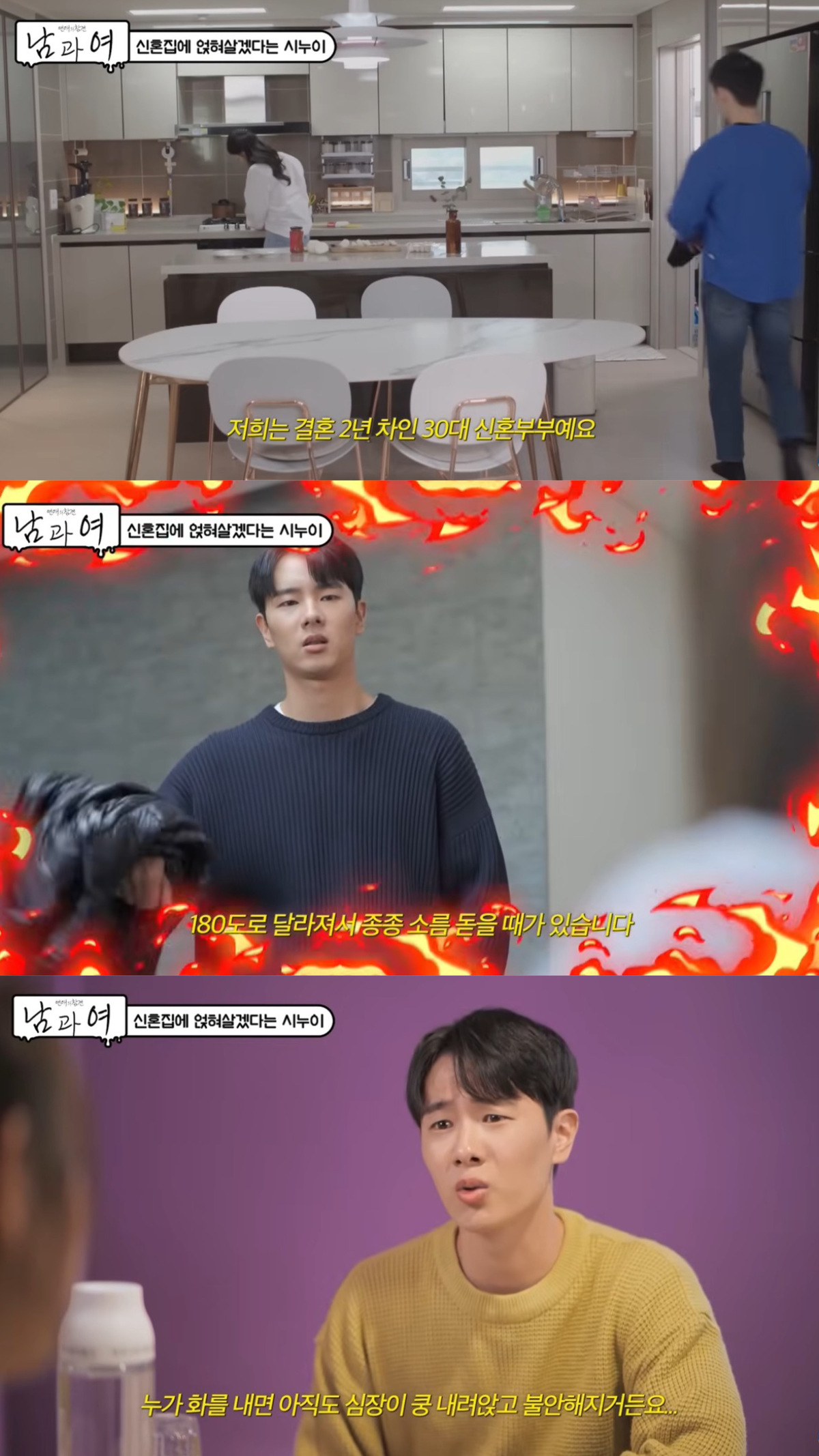 배려 없는 남편의 모습에 화가 난 사연자가 “내 생각은 안 해? 그리고 우리 신혼인데 어떻게 셋이 지내”라고 따지자, 남편은 “뭐가 문제길래 아버지 앞에서도 인상 쓰냐”라면서 나아가 “이 집, 우리 집이 아니라 아빠 집이야. 시댁 집이면 시댁 말 좀 들어야 하는 거 아니냐”고 말했다.