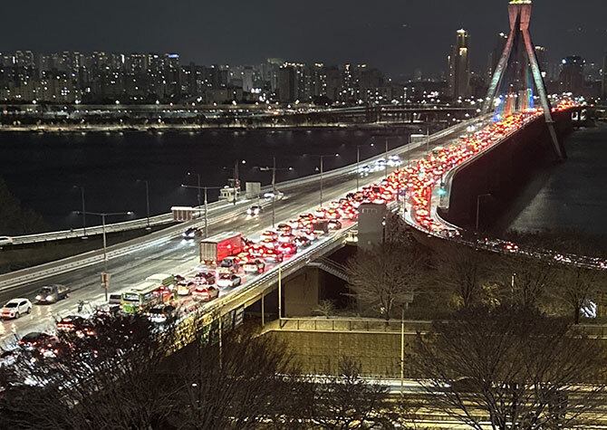 지난 4일 오후 10시를 전후해 북부간선도로 도농육교∼구리IC가, 비슷한 시각 구리∼포천 고속도로 민락 IC 일대가 도로 결빙으로 양방향 통제됐다.