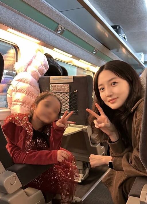 공개된 사진에는 기차 좌석에 앉아 딸 수아와 함께 브이(V) 포즈를 취한 김소영의 모습이 담겼다.