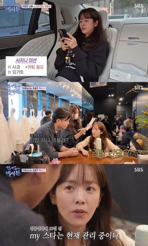 한지민은 드레스 부띠끄에 가서도 차에 남겨둔 요거트를 가져다 달라고 했고 "김밥을 먹으라"는 이서진의 제안을 거부했다. 그러면서 "드레스 입어야 해서 안 된다. 김밥이 혈당을 가장 빠르게 오르게 하는 음식이라고 한다"고 말했다.