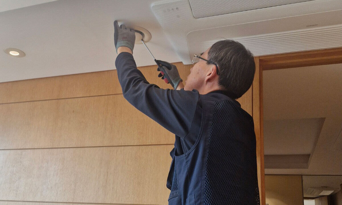 이상철(59)씨가 지난달 16일 서울 여의도에 있는 한 호텔 객실을 수리하고 있다. 이씨는 지난해 6월 고용노동부의 중장년 경력지원제를 통해 시설관리 용역업체에 취직했다. 이상철씨 제공