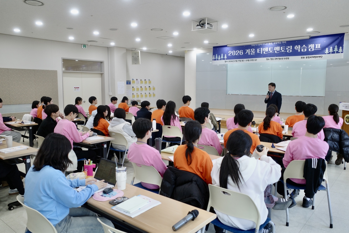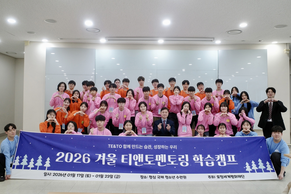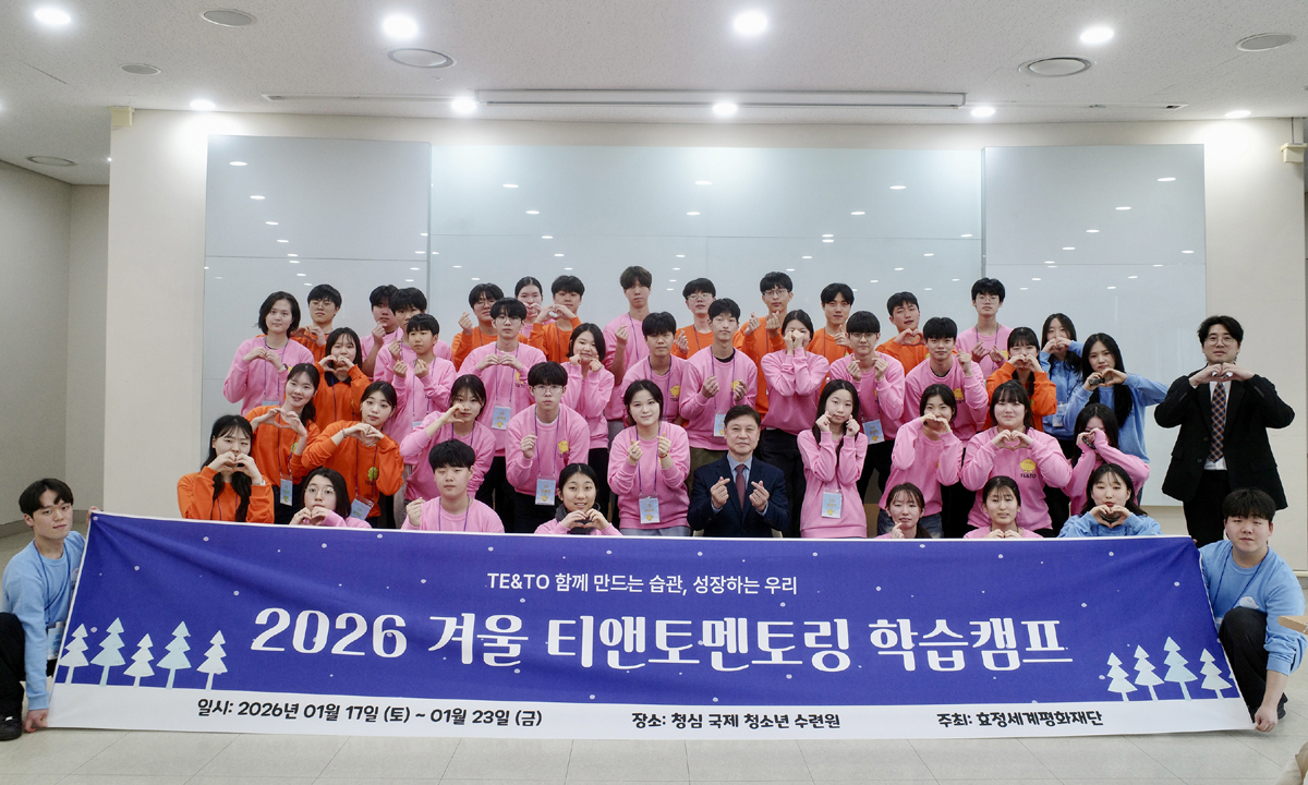 25일 원모평애장학원에 따르면 지난 17일부터 23일까지 6박 7일간 경기도 가평군 설악면 청심국제청소년수련원에서 ‘2026년 겨울 티앤토(TE&TO) 멘토링 학습캠프’를 운영했다.