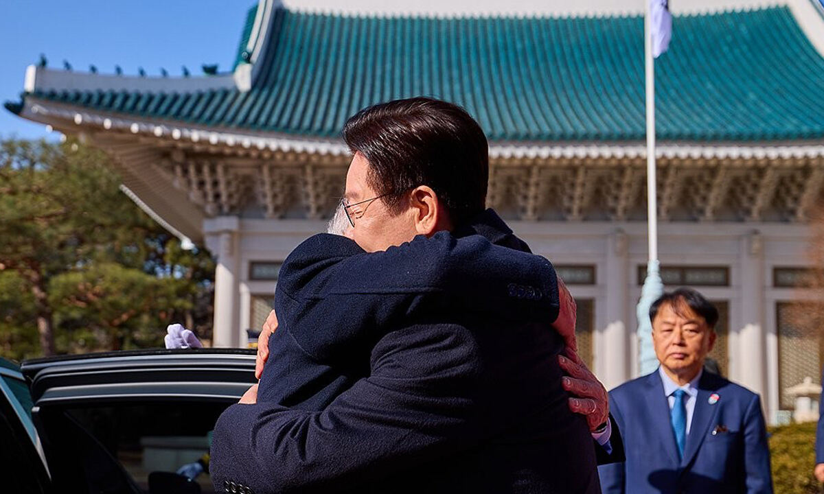 이재명 대통령이 23일 청와대에서 국빈 방한한 루이스 이나시우 룰라 다시우바 브라질 대통령을 포옹하며 맞이하고 있다. 청와대 제공