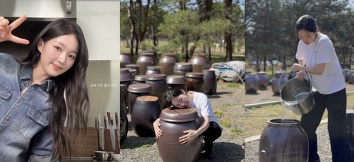 공개된 사진 속 김시현은 장독대 앞에서 환한 미소를 지은 채 장독을 끌어안거나, 직접 물을 붓는 등 전통 장 담그기에 집중하는 모습을 보였다.