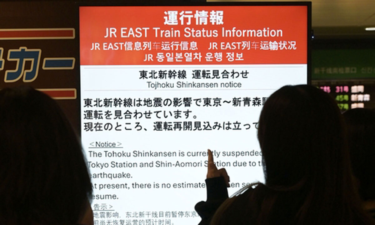 JR 동일본은 이번 지진으로 도호쿠 신칸센 도쿄-신아오모리 구간 등의 운행을 중단했다.